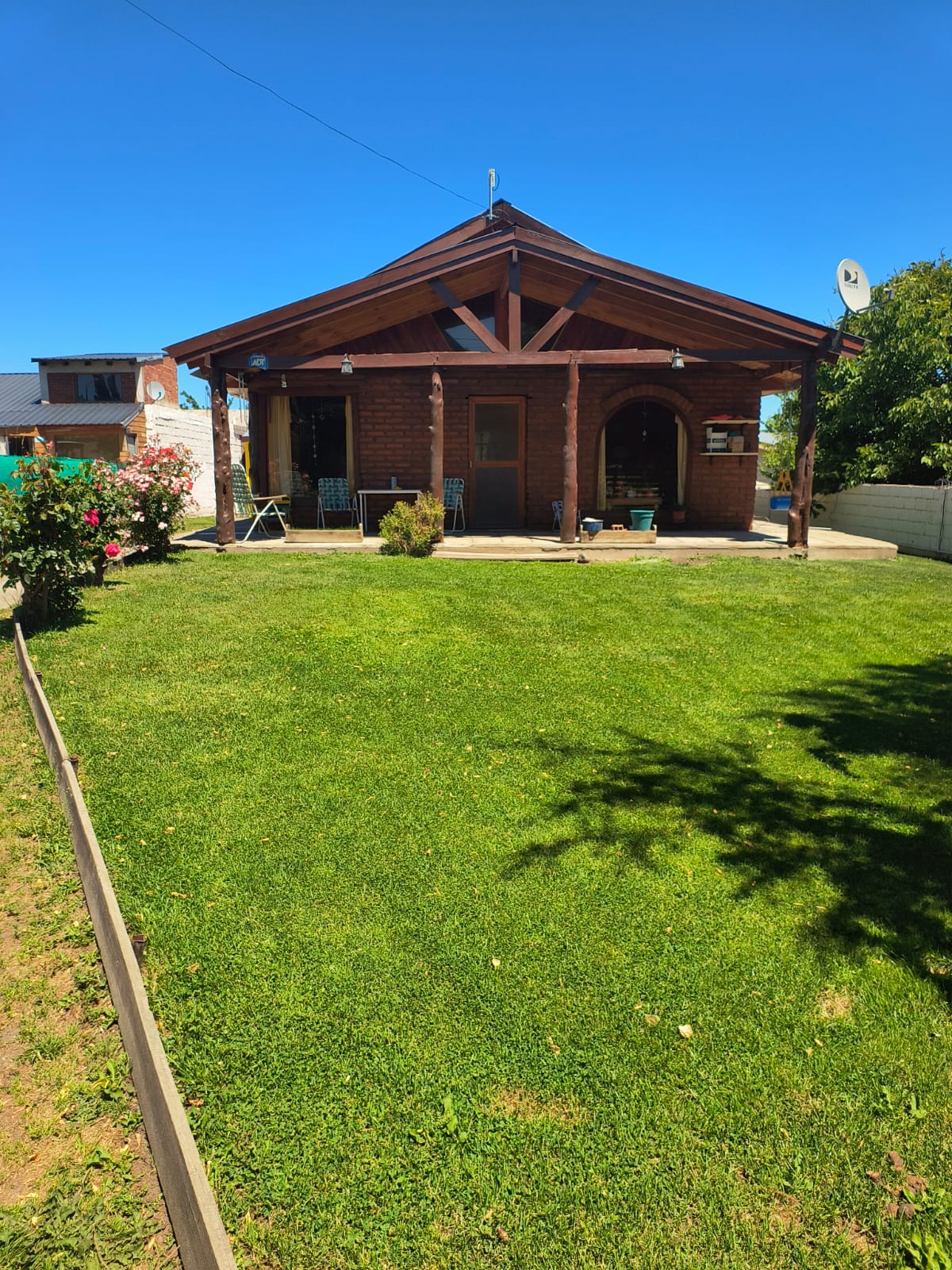 Esta propiedad de 600 m² tiene una ubicación estratégica, ya que se encuentra a 150 metros de la avenida principal y a 200 metros del supermercado La Anónima. La casa principal cuenta con una superficie cubierta de 185 m², distribuida en tres habitaciones, una cocina, un amplio living comedor y un baño.